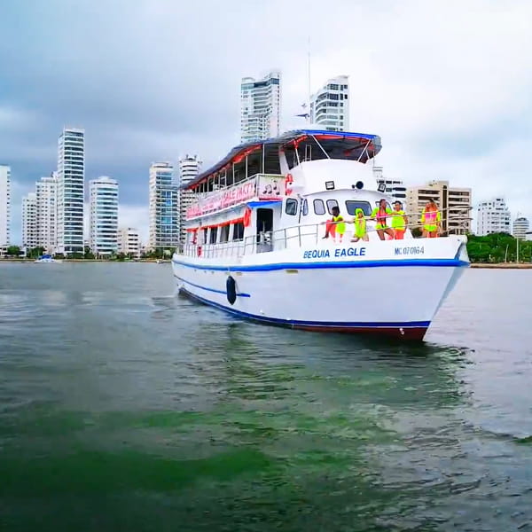 Vive una mágica experiencia a bordo de la embarcación degustando una rica cena estilo buffet y rumba dirigida por un grupo de bailarines.